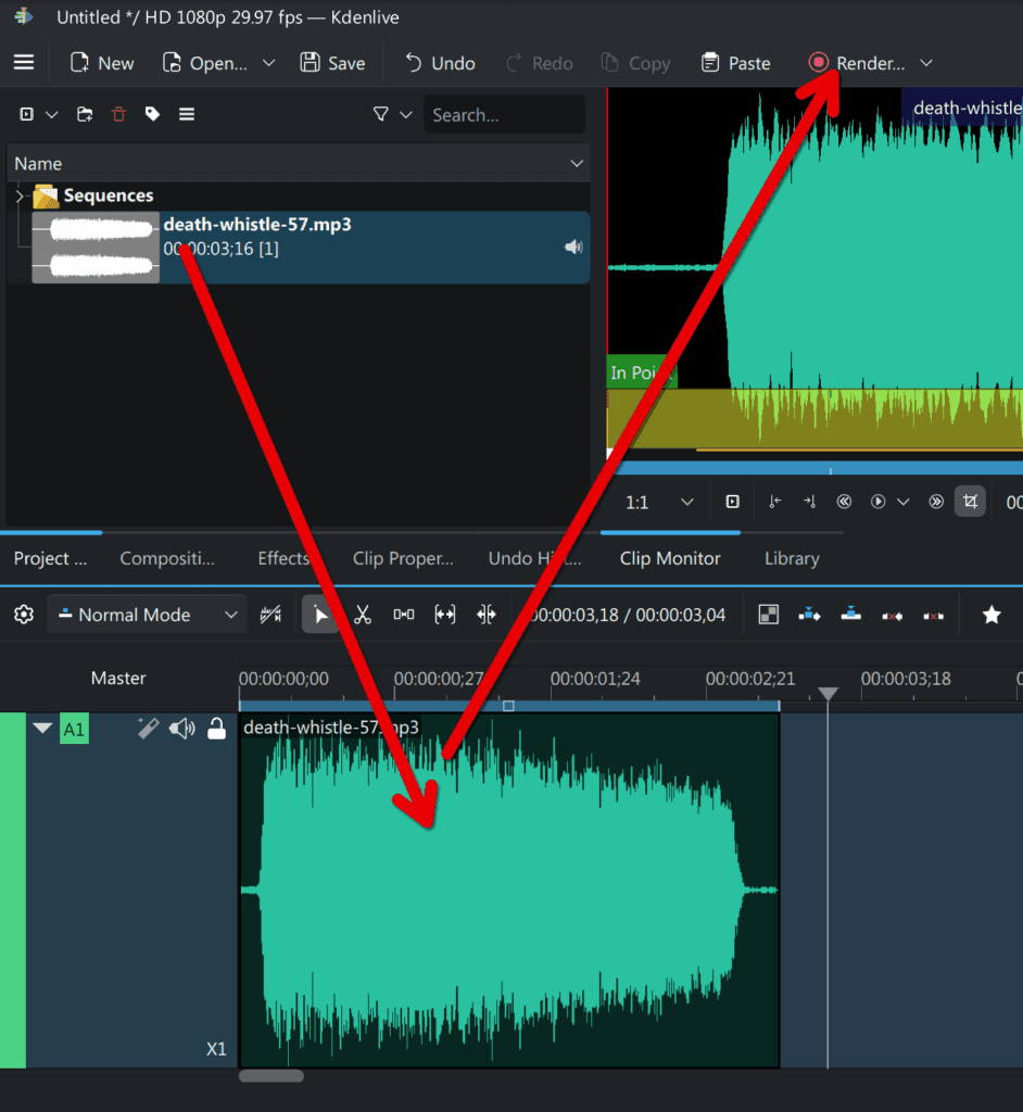 Drag and drop into A1 any audio that you would like to use, make your edits, then render the project: